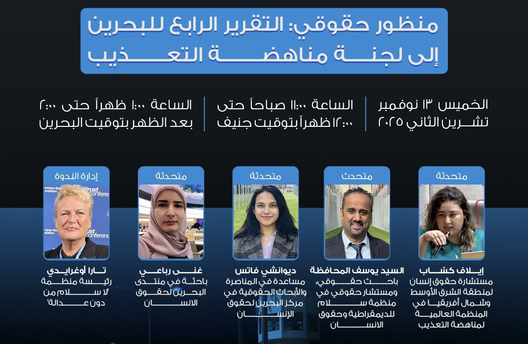 ندوة افتراضية باللغة الانكليزية بعنوان منظور حقوقي: التقرير الرابع للبحرين إلى لجنة مناهضة التعذيب